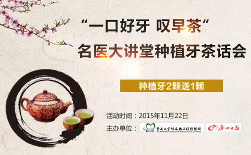 喝早茶是很多老广州的习惯,但您是否有试过边喝早茶边听名医授课的经历呢?11月22号,缺牙老人福利到了,穗华口腔医院联合广州日报举办名医大讲堂种植牙茶话会,届时您能听到国内种植牙专家将为广大缺牙老人献上一场别开生面的种植牙茶话会。