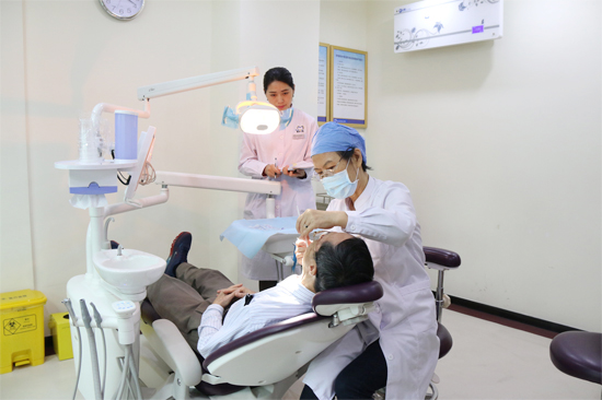 ▲ 专家为缺牙读者进行口腔健康全面检查